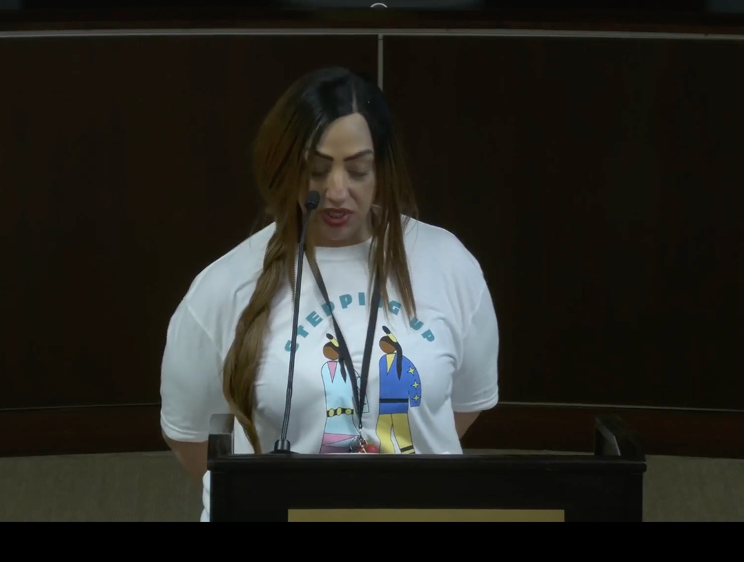 “Somewhere I read about the Freedom of Assembly, yet for years people have been injured and even killed for doing so. In an ABC7 article, we read that just four months ago in LA, during the ‘No Kings’ demonstrations, protesters were hit with rubber bullets simply for using that right. Somewhere I read about the Freedom of Press, yet our news is more censored than ever before.”